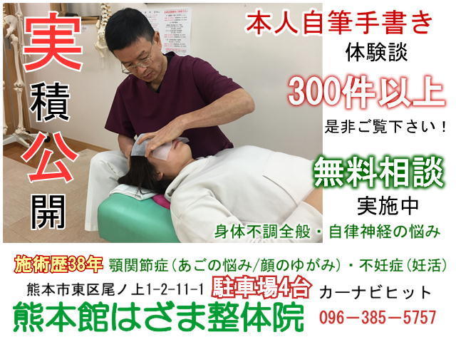 当院のお客様はどこに行っても何をやっても良くならなかった方が多く、身体不調・自律神経系や顎関節症(あごの痛み)や不妊症等の悩みに対応しています。